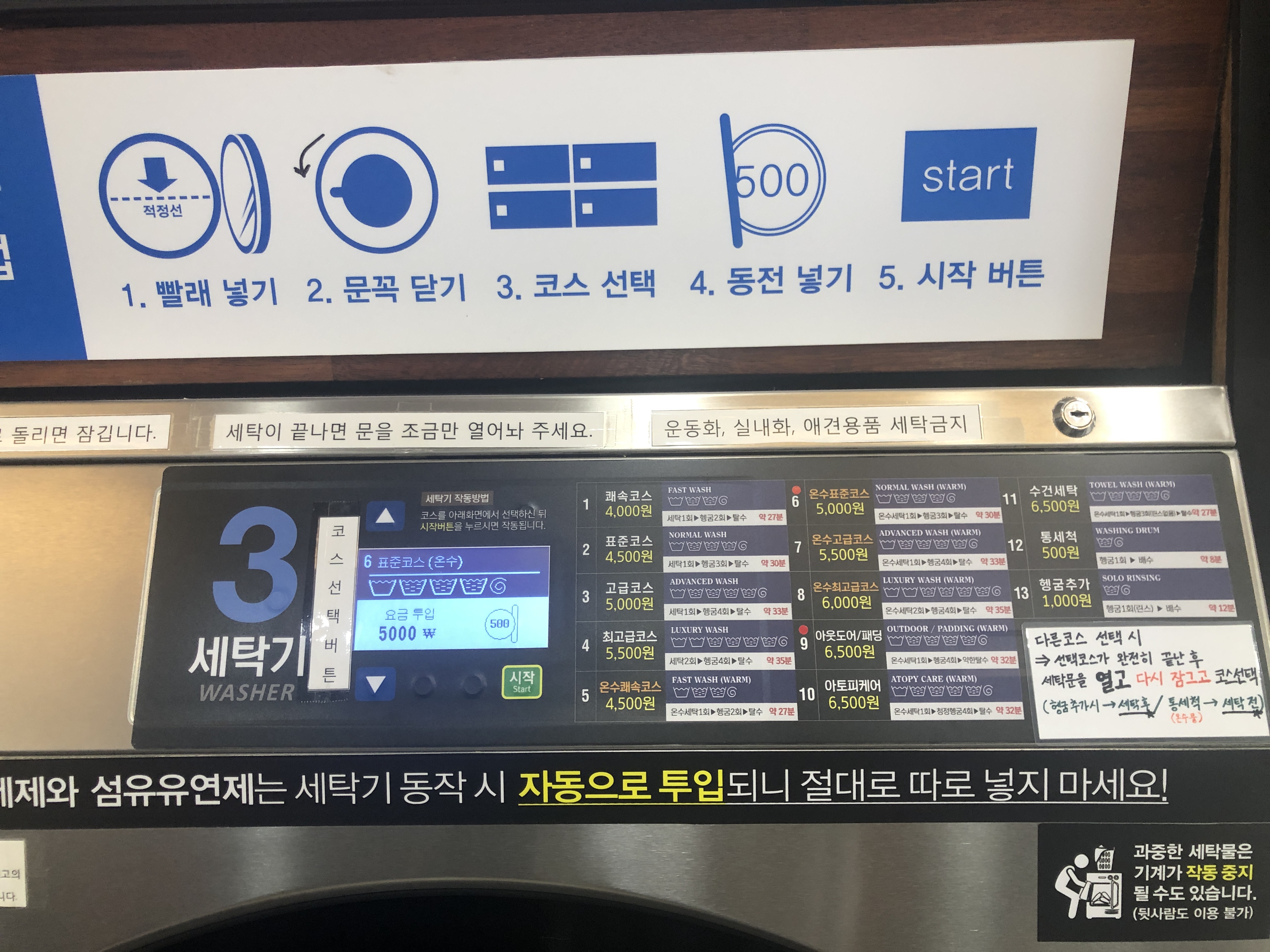 세탁기 위에 세세하게 잘 써있으니